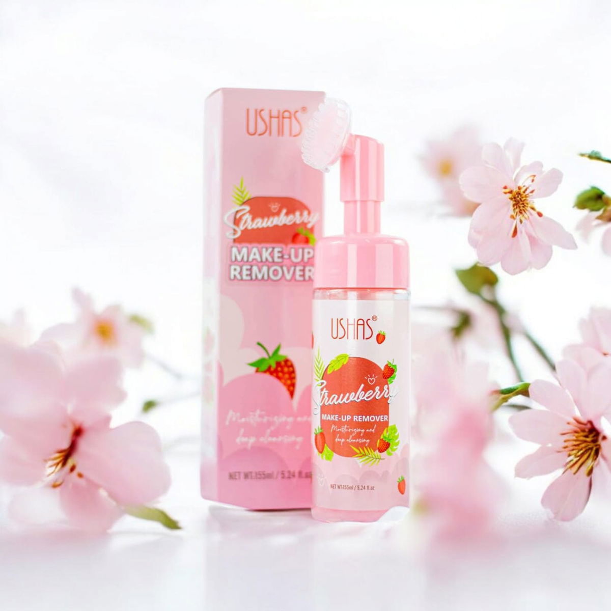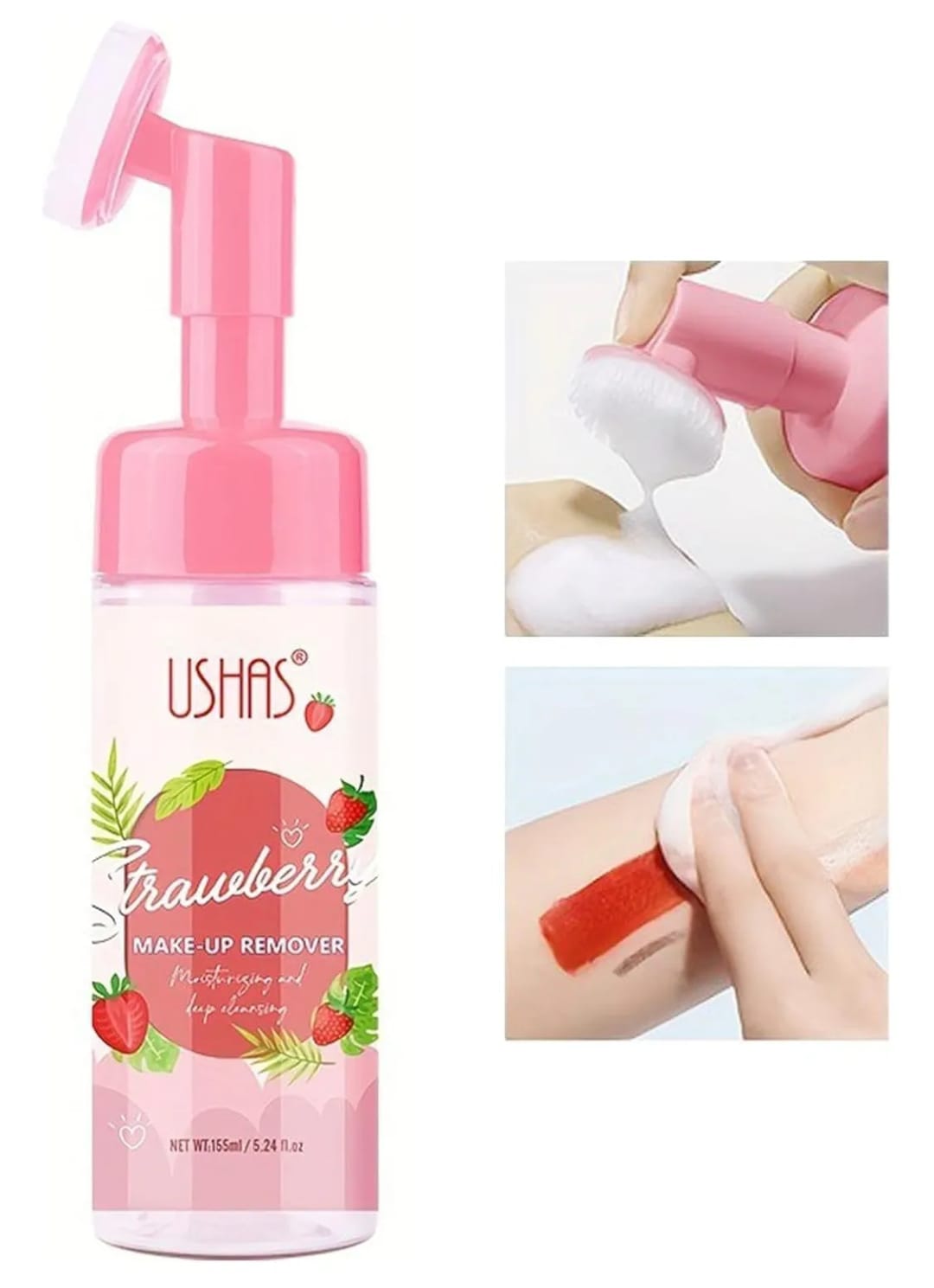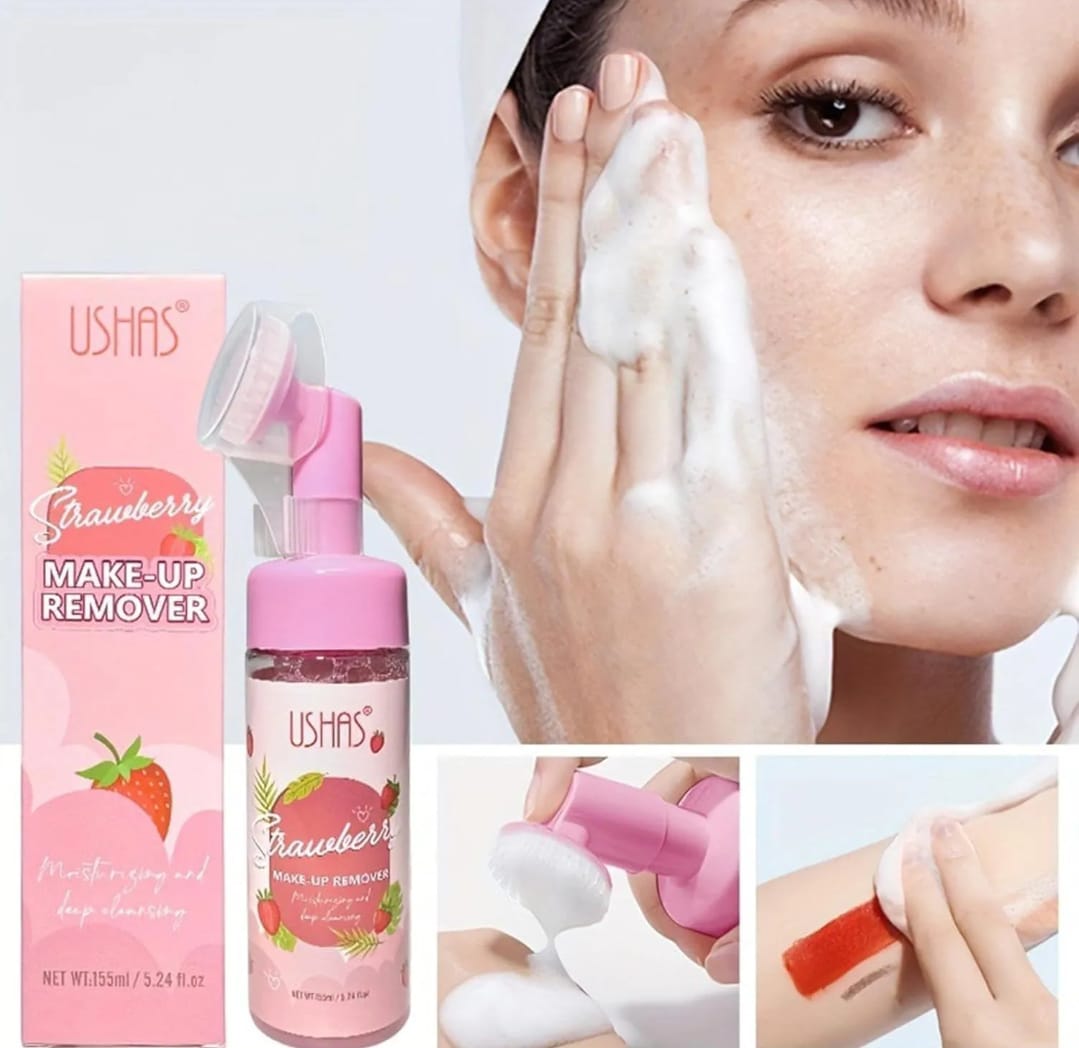 Make-up remover Ushas Strawberry 🍓💦 Desmaquilla profundamente mientras cuida tu piel. Su cepillo suave hace que la limpieza sea más efectiva y agradable. 🌟🧼