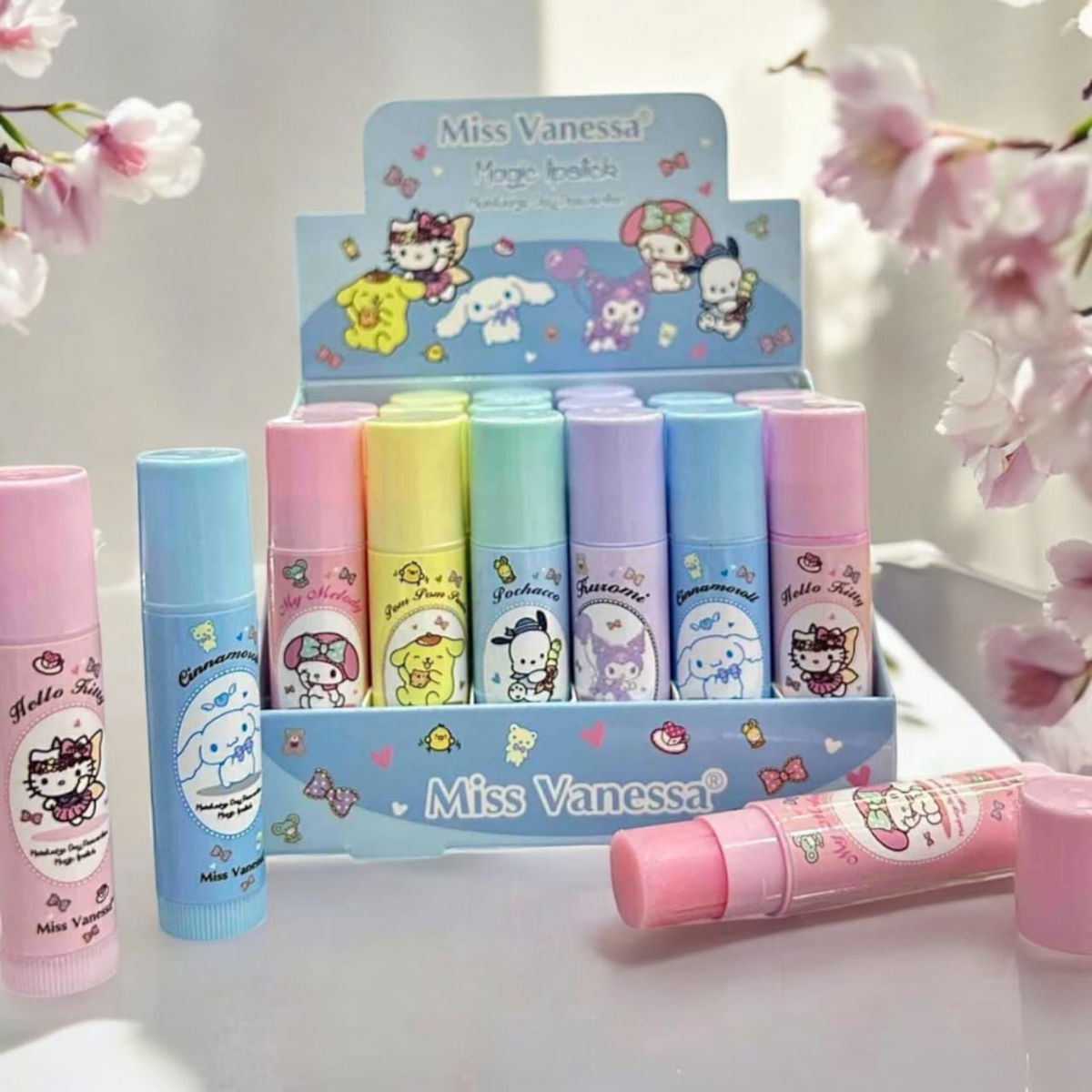 Bálsamo Mágico Kitty y Amigos 🌸💋 Hidrata tus labios mientras disfrutas de un diseño adorable de Kitty y sus amigos. Perfecto para llevar a todos lados y darle un toque divertido y mágico a tu rutina diaria. ¡Labios suaves y llenos de estilo! 🌟💖
