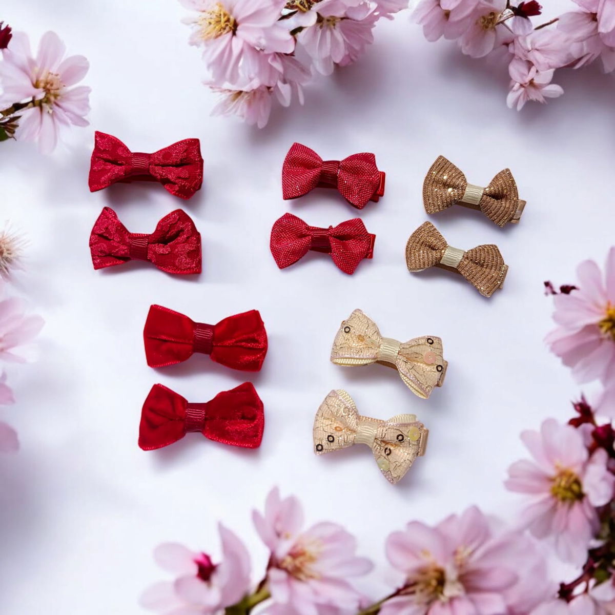 🎀 Hebillas Moño con Brillo – Colores Bordó y Crema 🌟