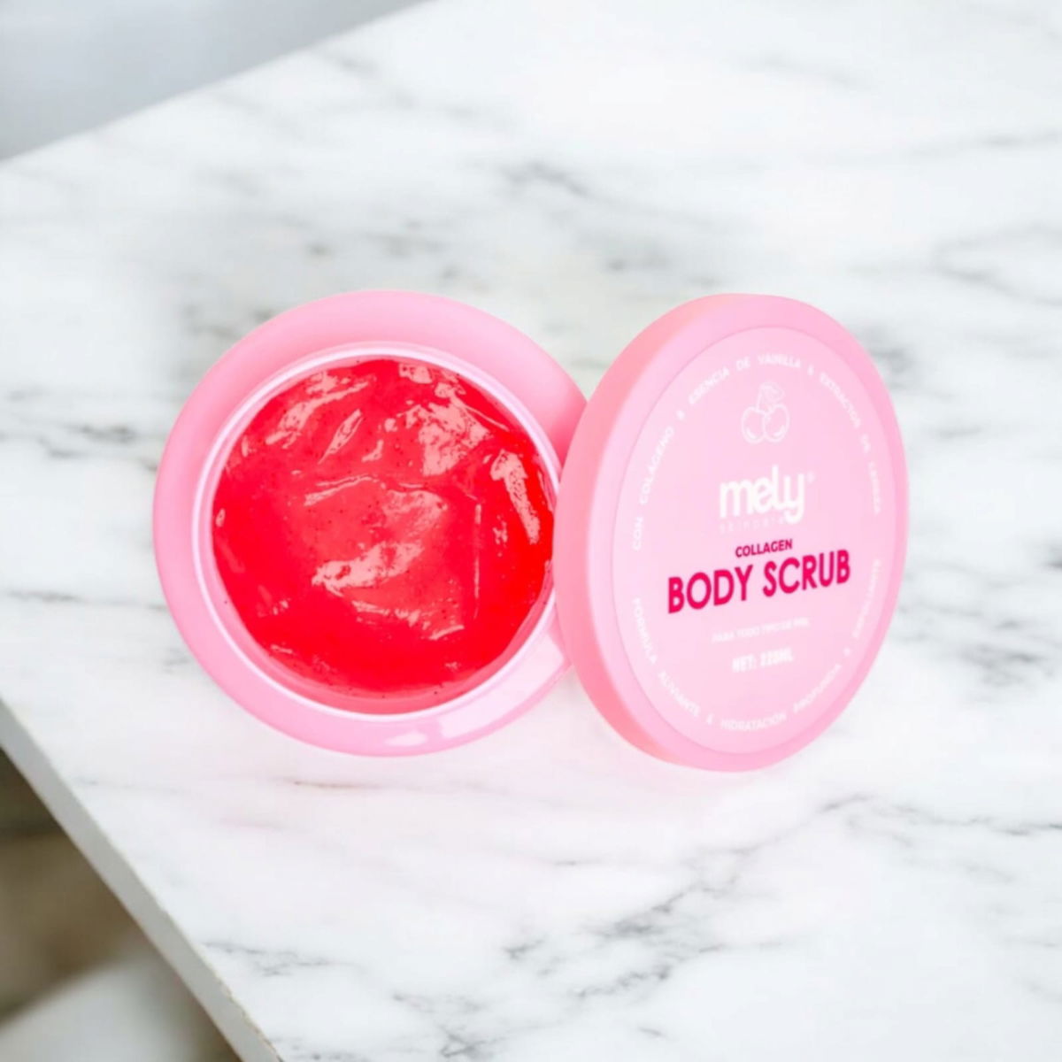 Exfoliante corporal Mely Body Scrub con colágeno, ayuda a eliminar células muertas dejando la piel suave y renovada ✨.