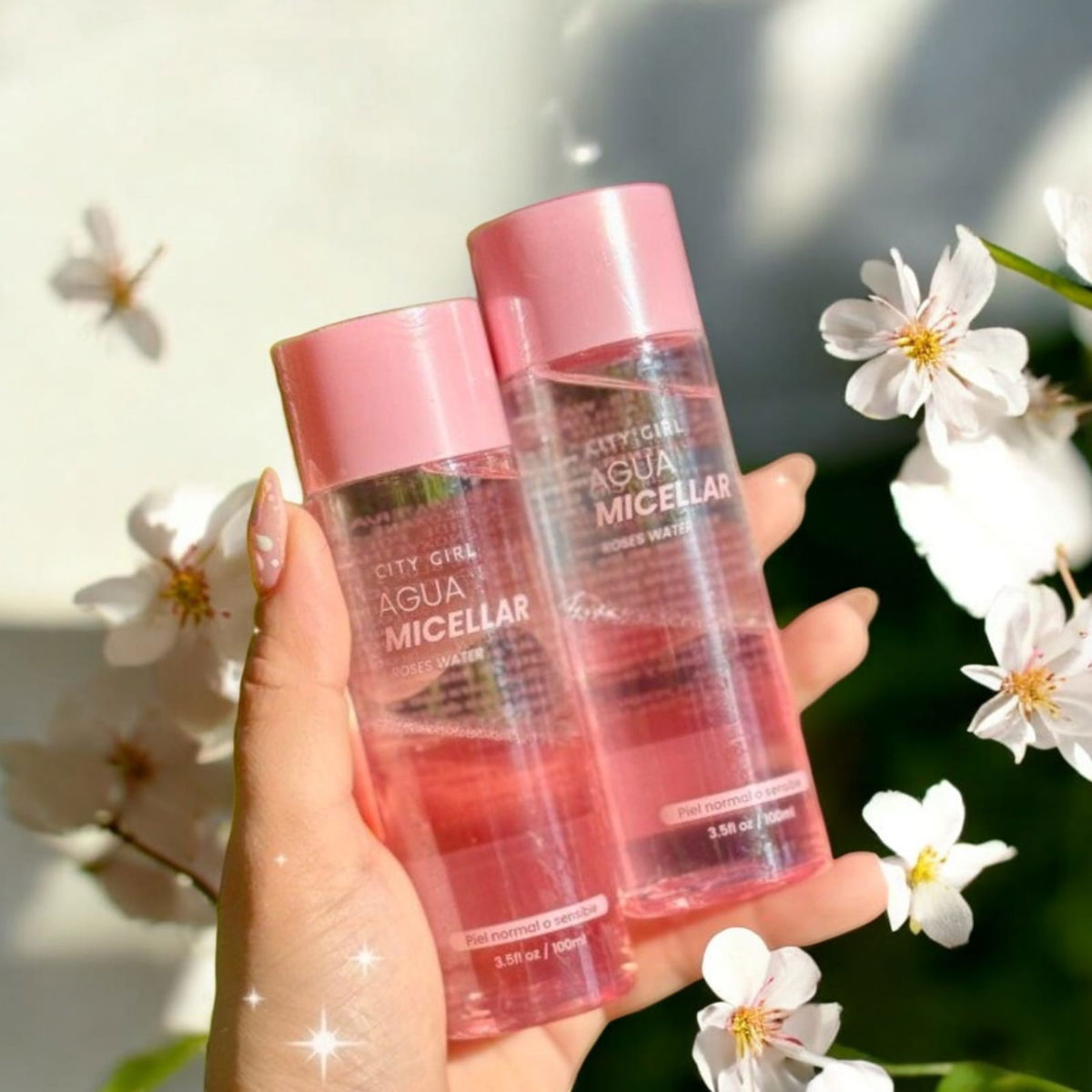 Agua micelar City Girl Roses Water, limpia, desmaquilla y refresca la piel en un solo paso 💦. Apta para piel normal a sensible, con fórmula suave y delicada 🌸.