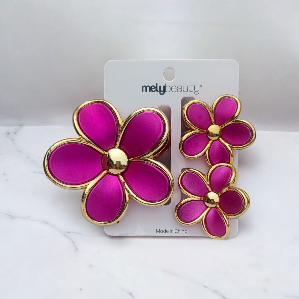 Sumá color y estilo a tus peinados con este set de broches para cabello Mely 🌈💖. Su diseño en forma de flores con bordes dorados ✨🌼 aporta un toque elegante, femenino y moderno ideal para cualquier ocasión.