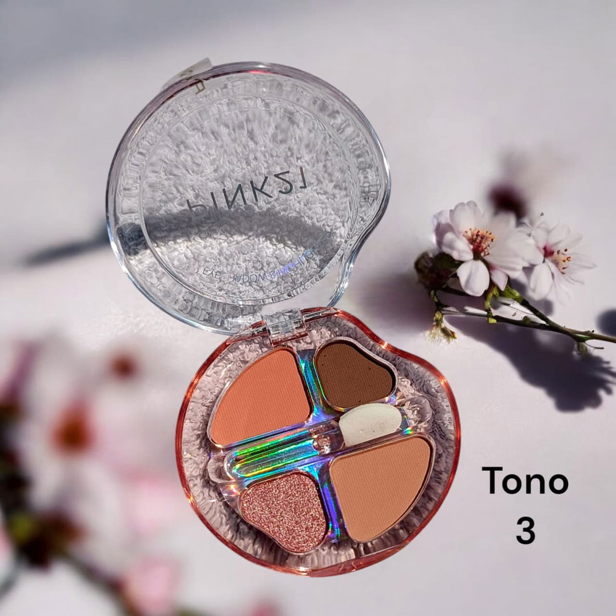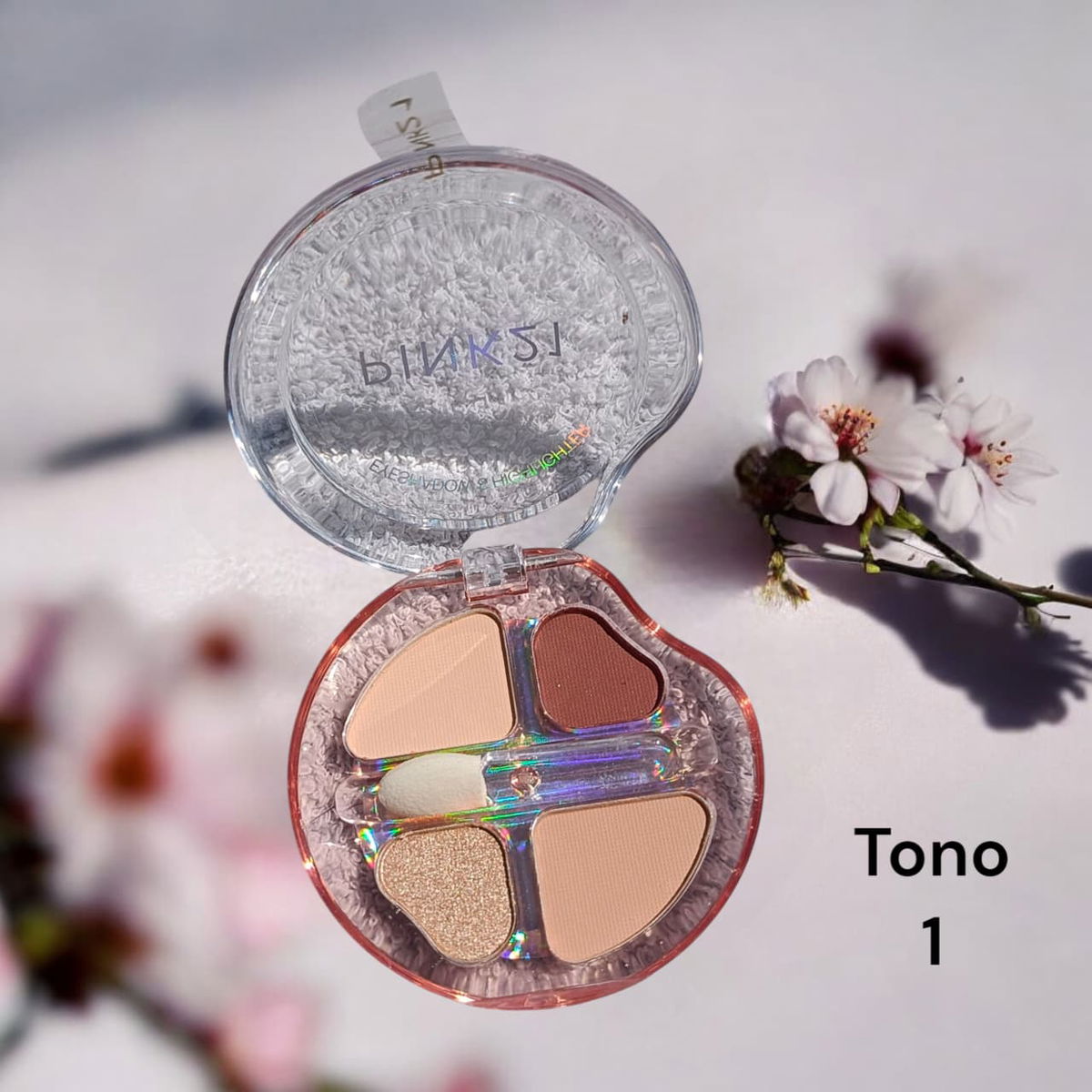 Incluye una combinación de sombras en tonos neutros y cálidos con acabados matte y shimmer, más un iluminador que aporta un glow hermoso al rostro. Todo en un solo compacto, ideal para llevar en la cartera o de viaje 👜💫