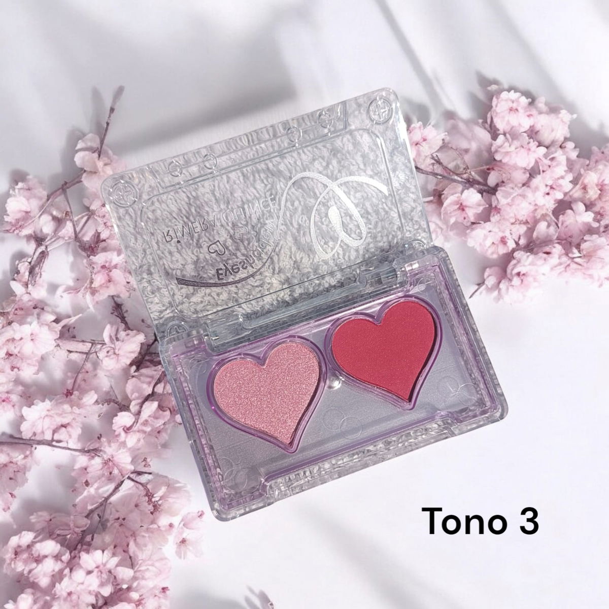 Las sombras dúo en formato corazón de Rimera Quince combinan diseño adorable y colores súper combinables para crear looks románticos, delicados o intensos 💕